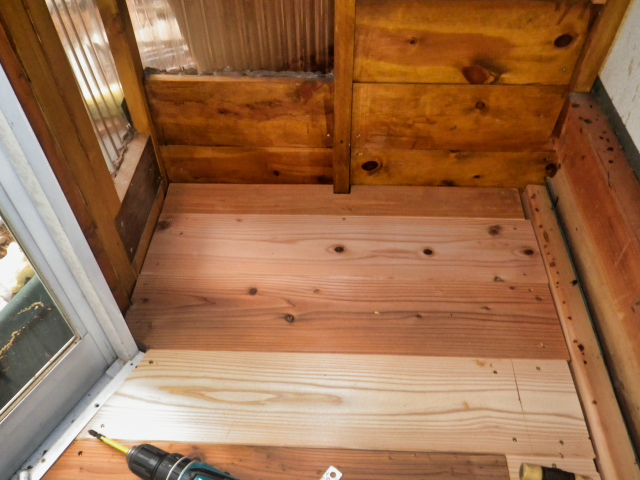 後は、幕板部分を化粧して、床を塗装したら、このフロアは完了