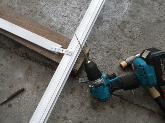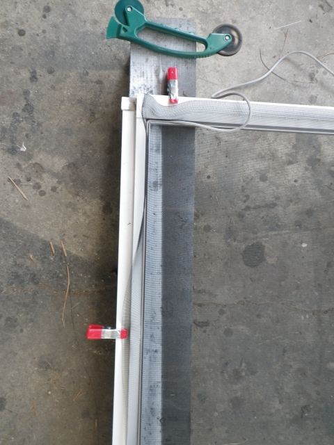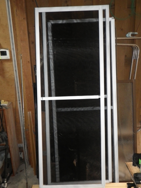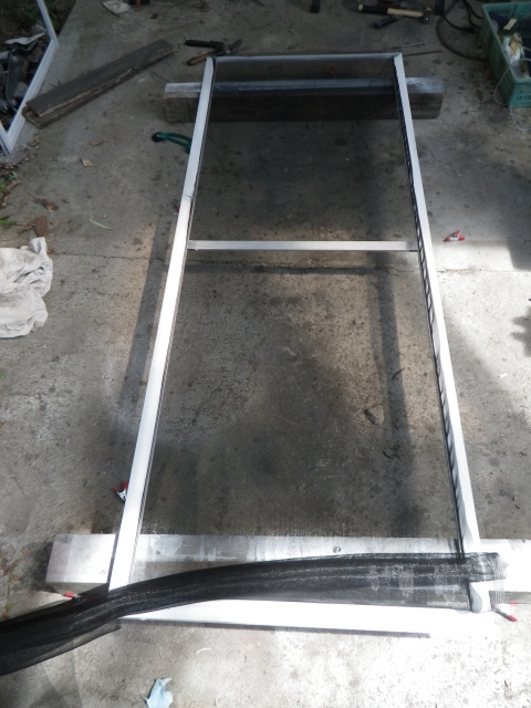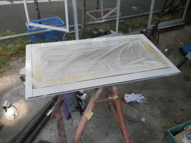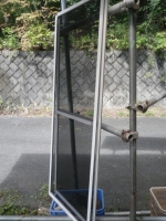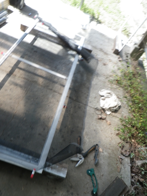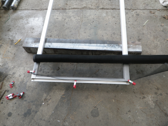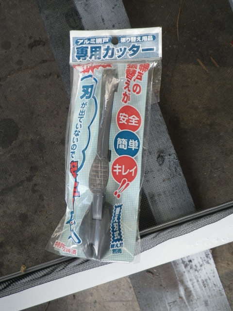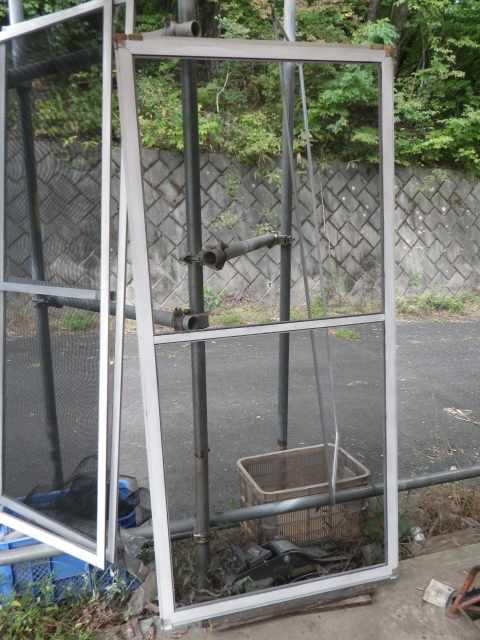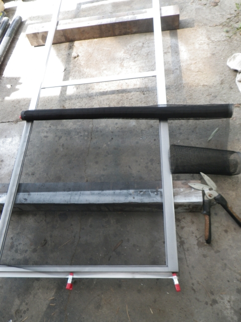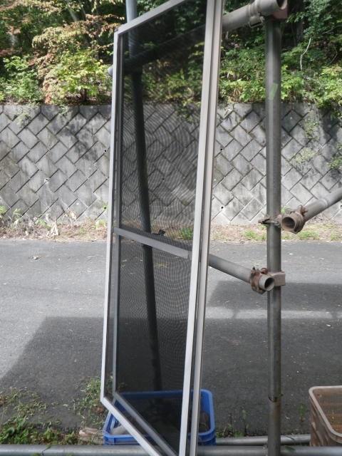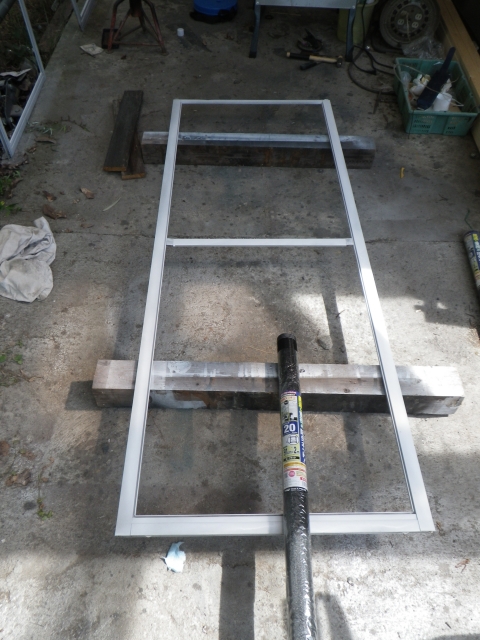 9/25:北側用の同型の4枚と西側用の1枚の網戸枠にネットを張る