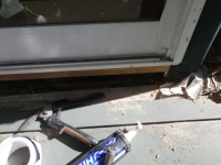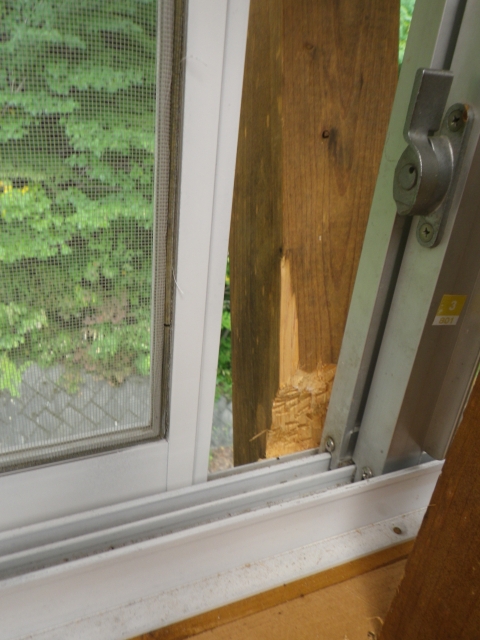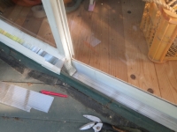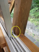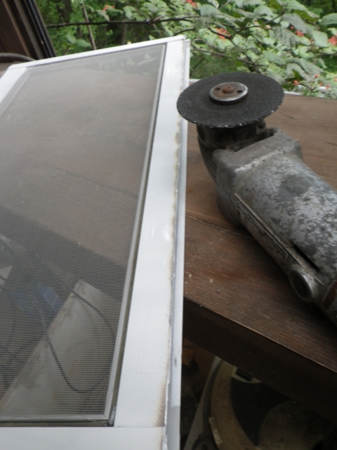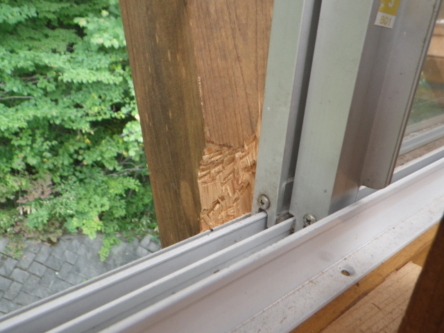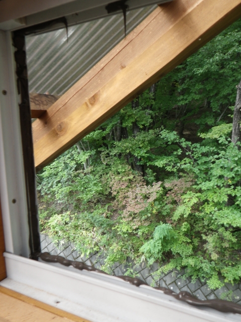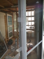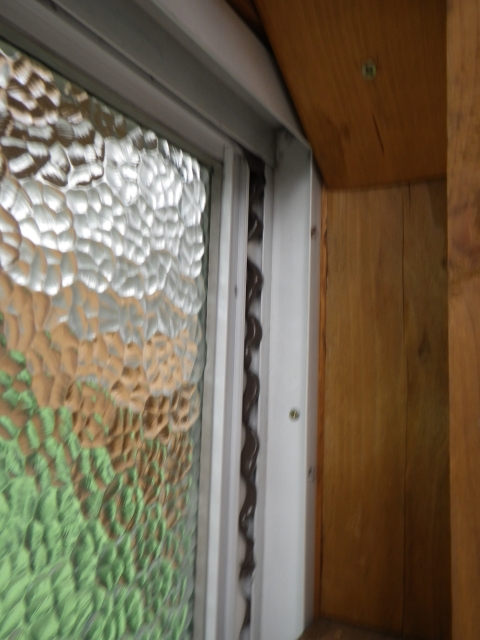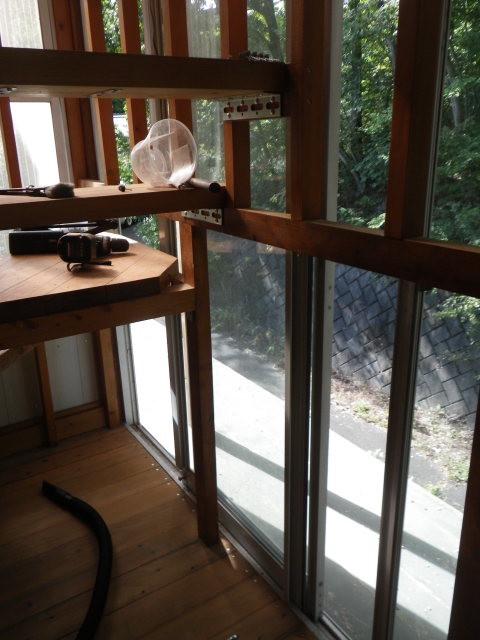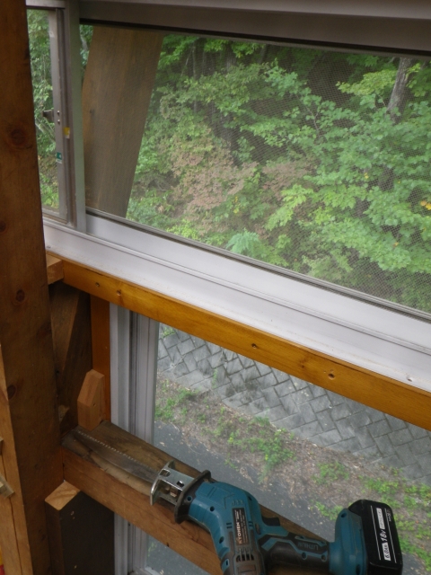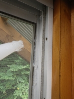 階段部屋2Fの上側の小窓、支柱に当たって網戸が入らないので、支柱を少し削った。