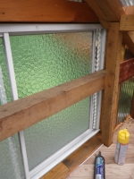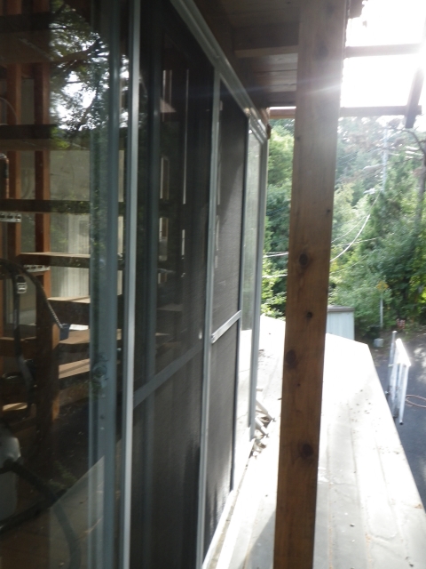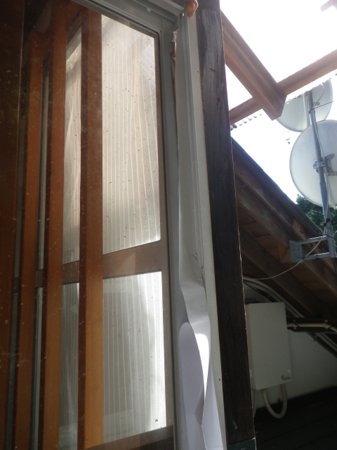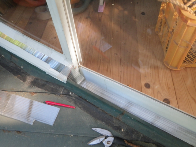 ここは、最西の1枚をアルミテープとコーキング固定して嵌め殺し。