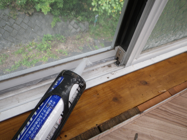 その横に網戸をコーキングで固定して、全ての隙間をシャットアウト
