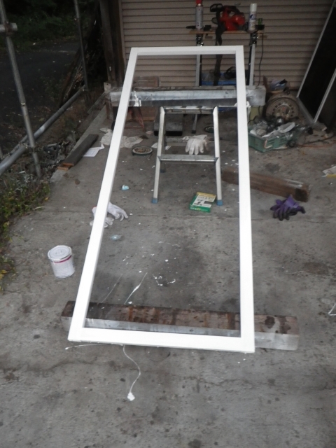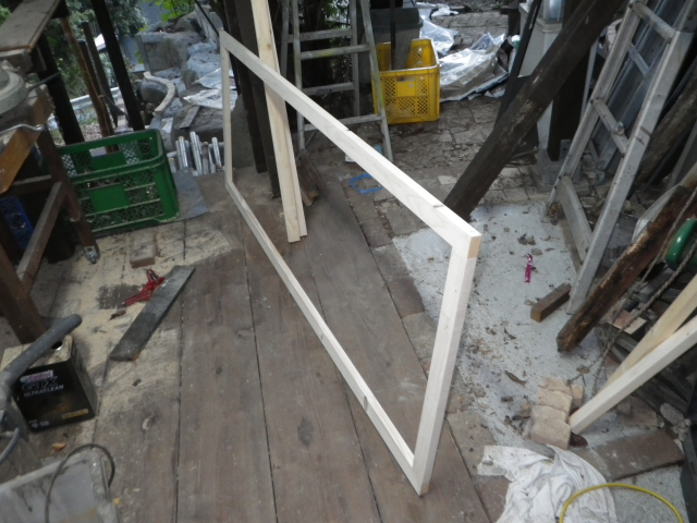 次は、北側の出入り用の網戸ドアのフレーム作成。