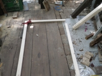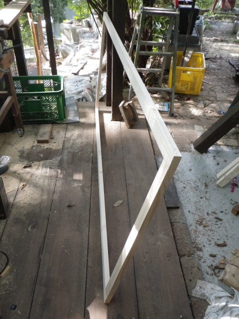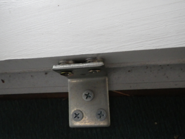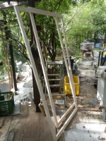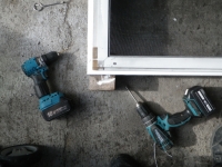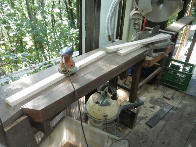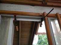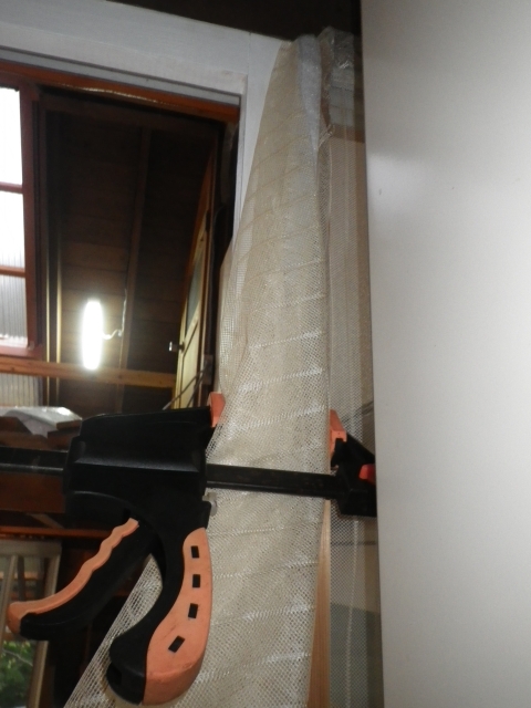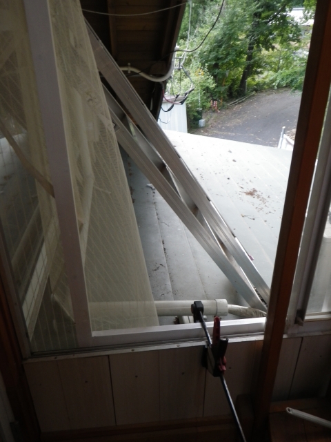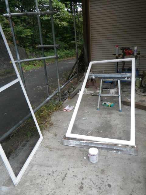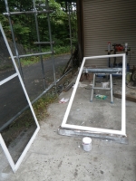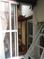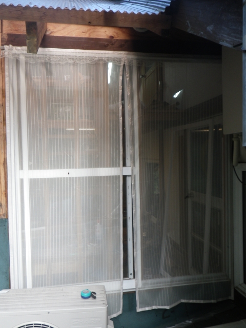 9/30:階段部屋北側の出入り用外網戸ドアの取付終えて、次は西側