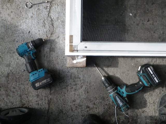 2025/9/30:階段部屋西側の出入り用外網戸ドアの作成〜取付