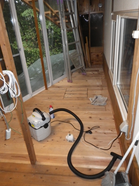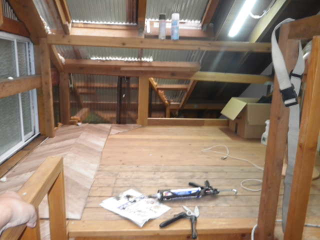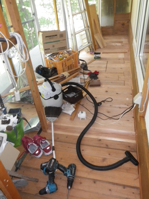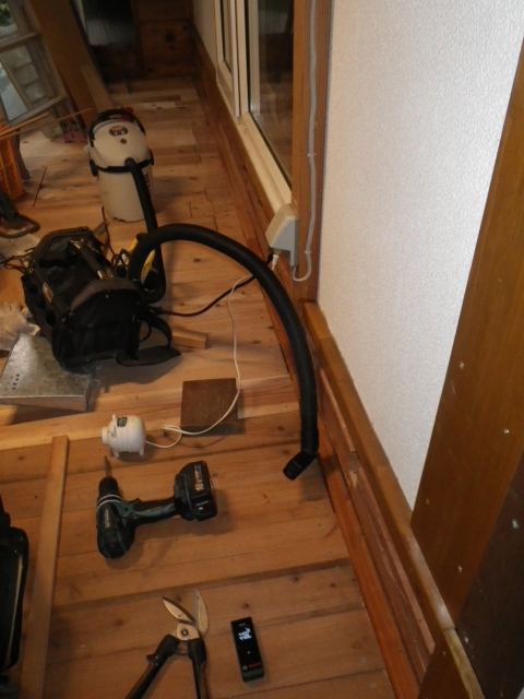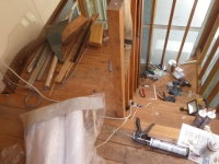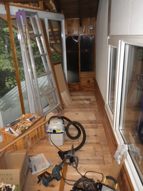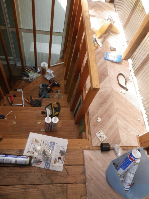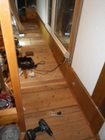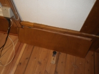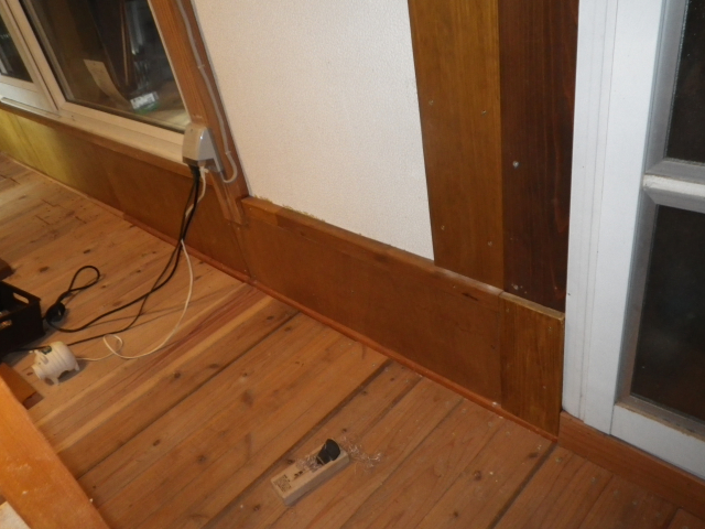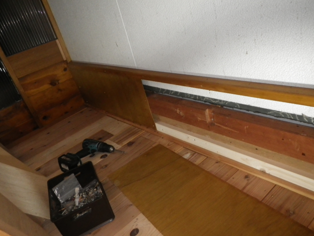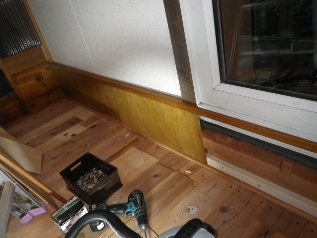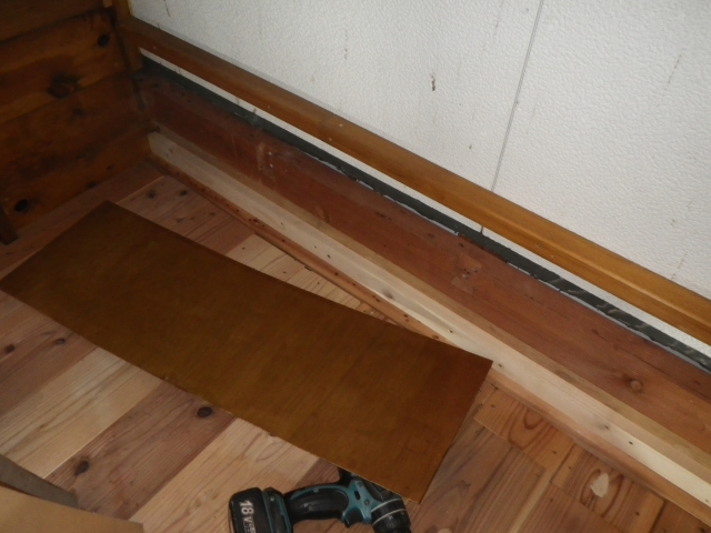 | 10/4:階段部屋最後の作業として、1Fの家側の幕板張り |