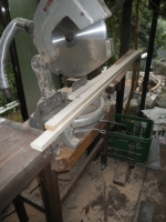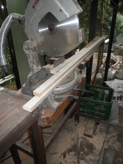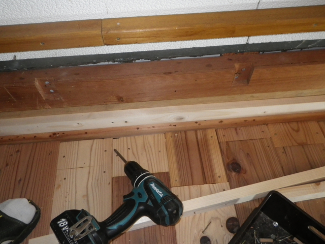 今回、外網戸のフレームに使った46mm x 24mm材を幕板の裏支えの桟?として切り出しして取付