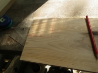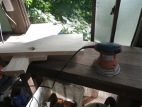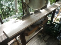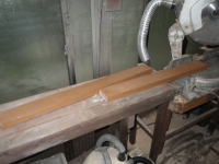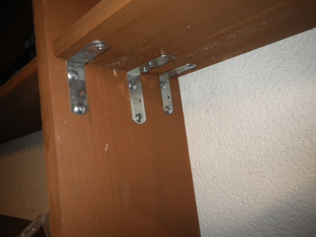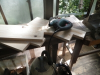 側板で上から支えるので、側板は、24mm厚x20cm幅、棚板は、15mm厚x10cm幅を並べて使う |