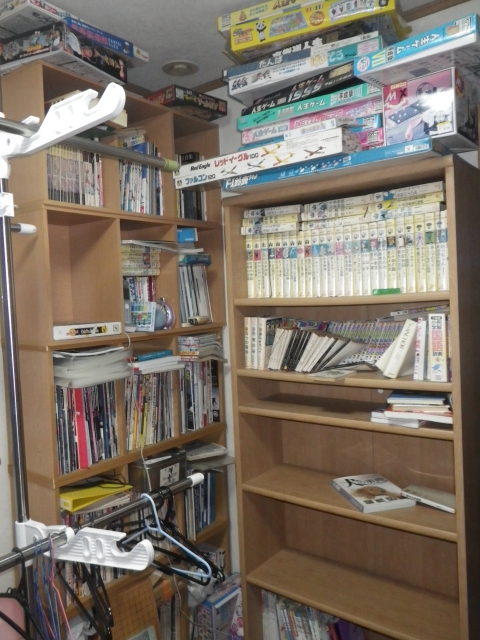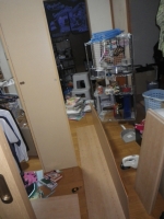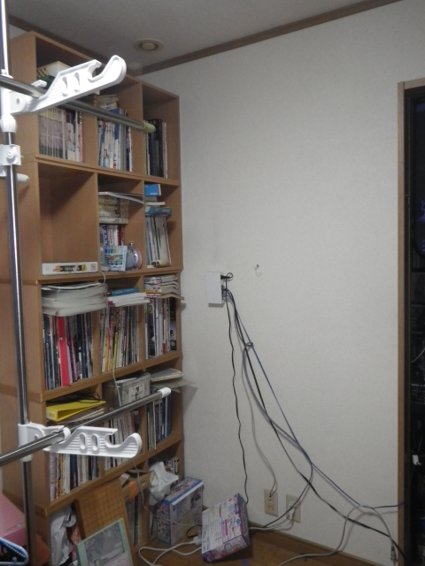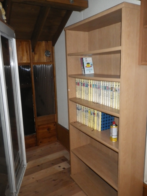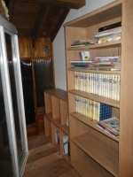 | TAROと2人で階段部屋への通路を通そうとトライしたけど、無理だったので、大きい本棚は分解して移設 |