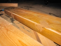 8/4 色んな道具使って、材のホゾきり、ディスクサンダーで丸め加工、節穴等のパテ埋めなど