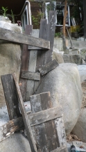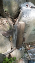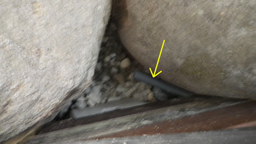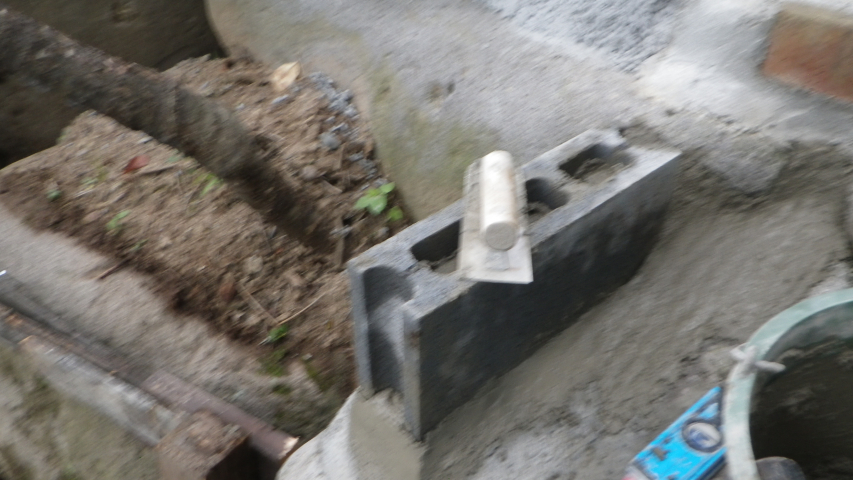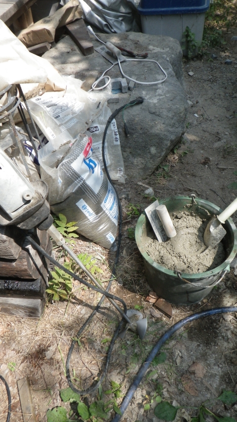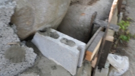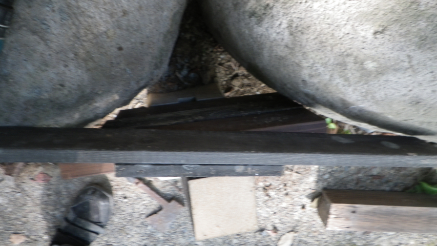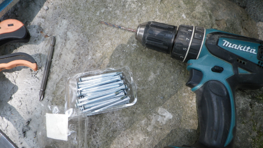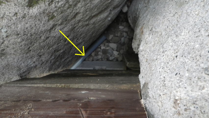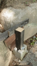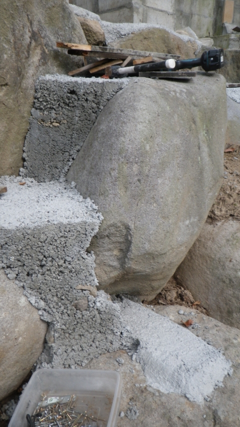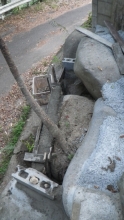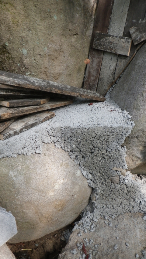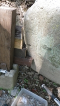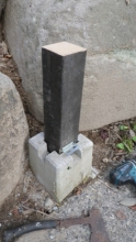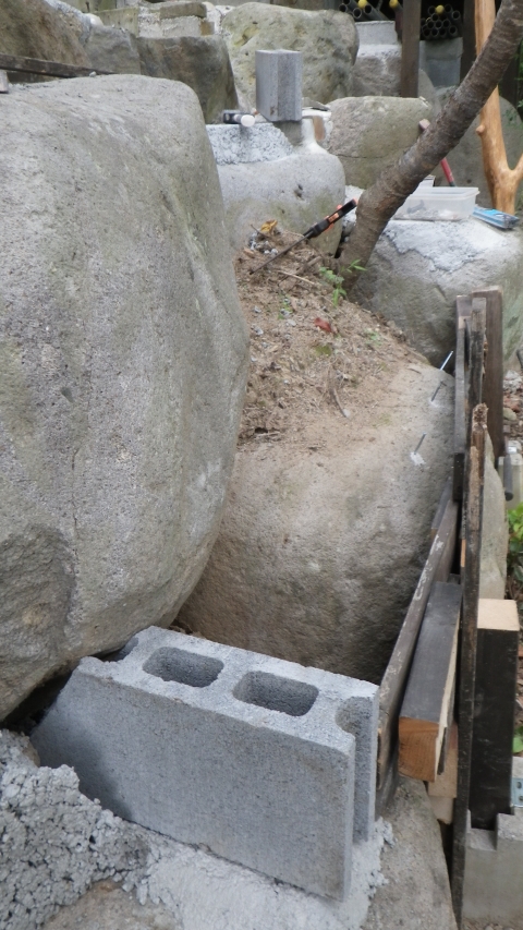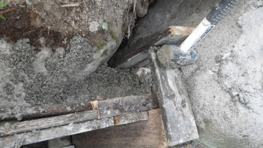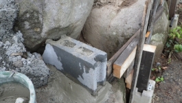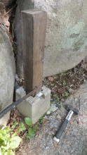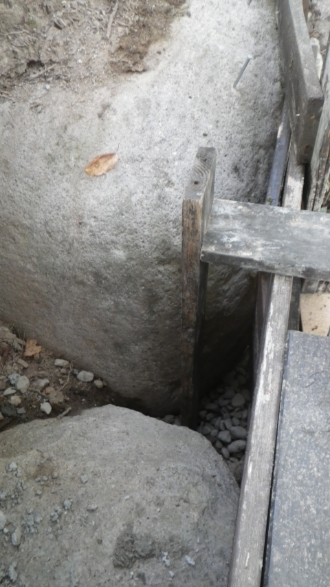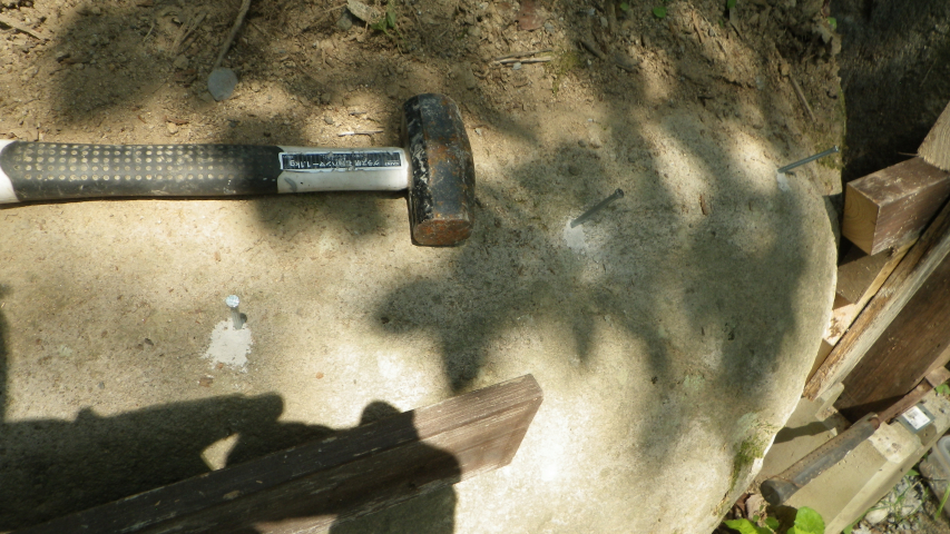 【10:51】石の斜面に基礎コン置くので、コンクリ釘を少し打つ |