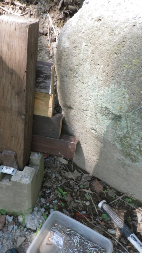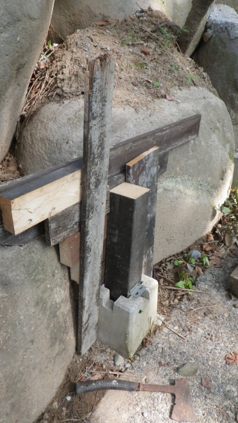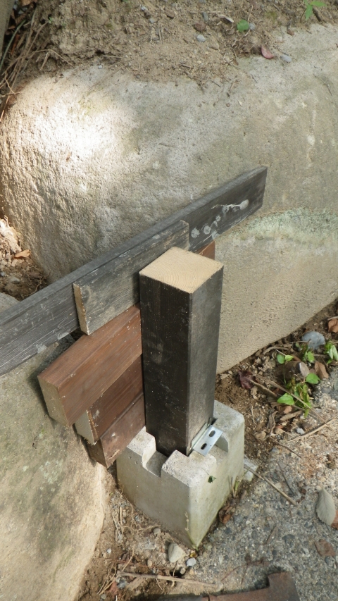 支柱跡に90mm角端材挿して支えにする