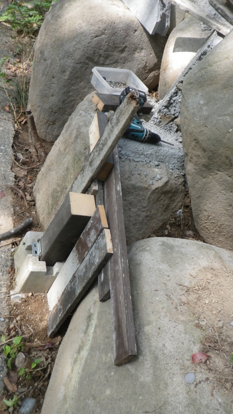 次は、外周路側に作る花壇の基礎のための型枠作成