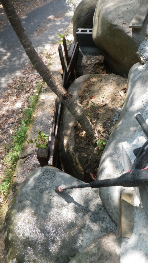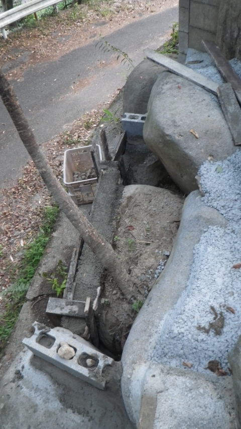 8/31:デッキⅤ区跡の外周路側に新しく作る花壇の基礎工事
