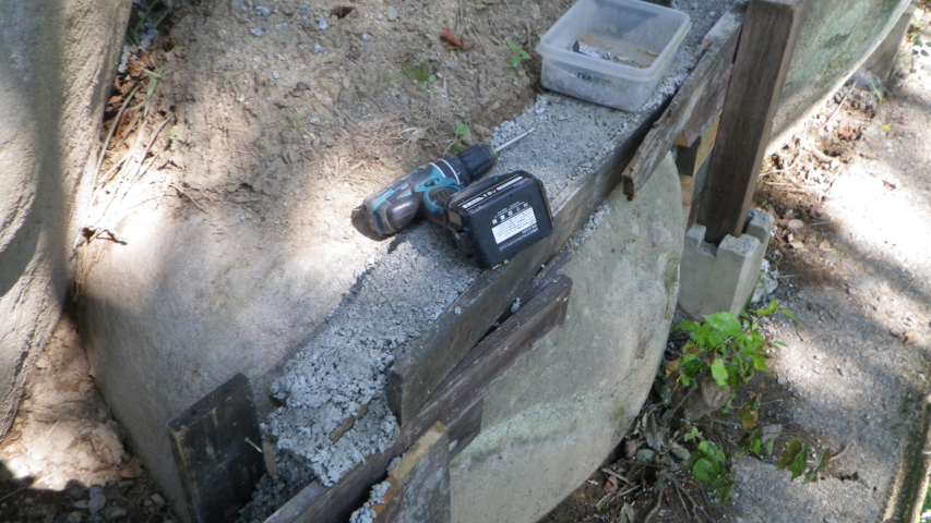 2025/9/1~2:デッキⅤ区跡の外周路側に新しく作る花壇の基礎工事の続き