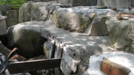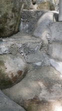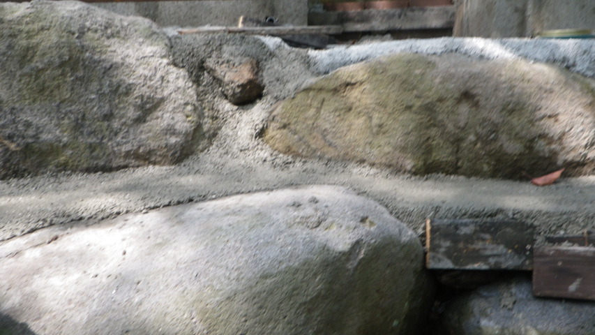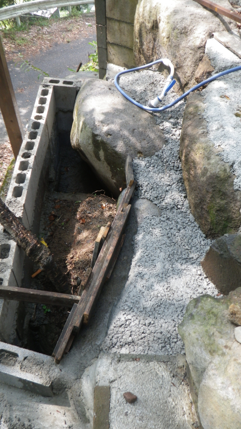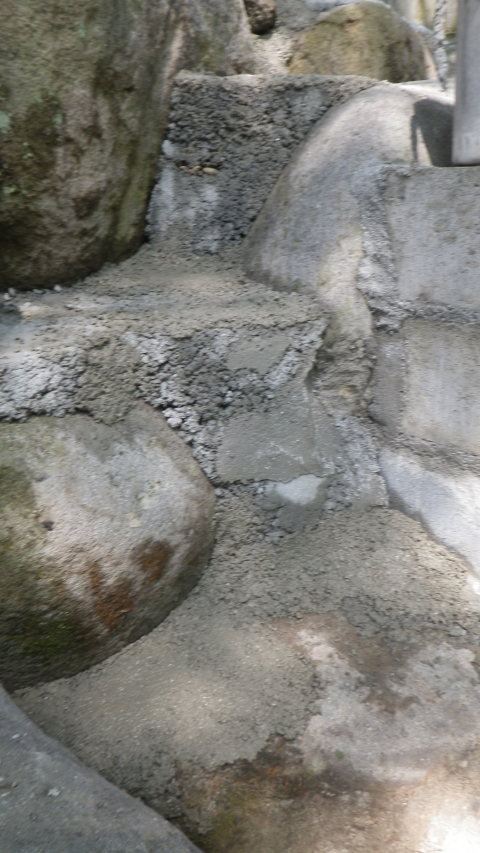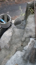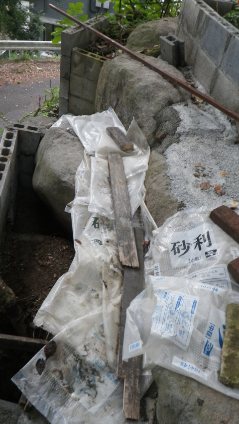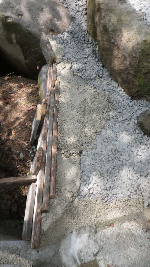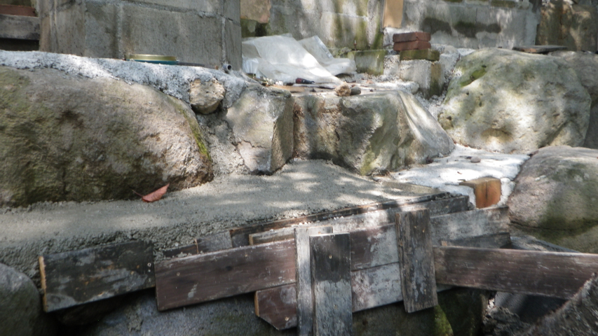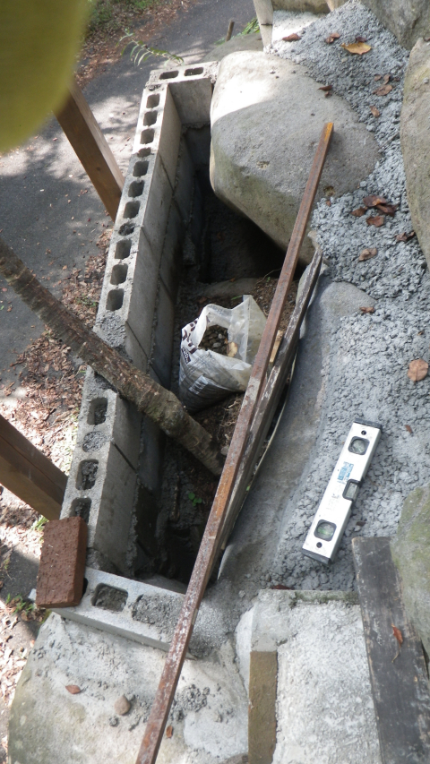 花壇上部のスペースと降りる階段のコンクリ埋め