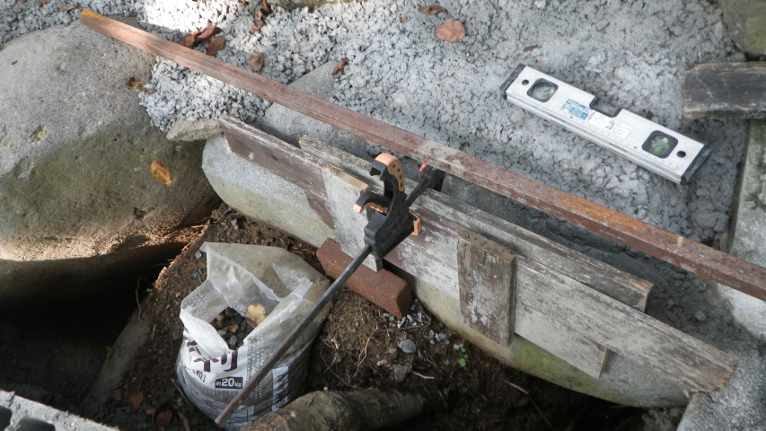 花壇上部のスペースが狭いので、拡大するための型枠作成