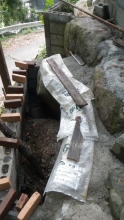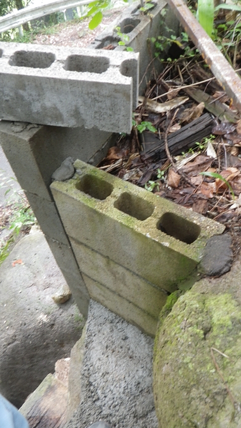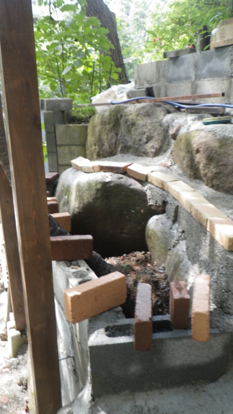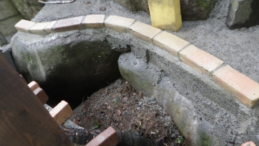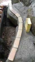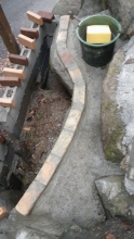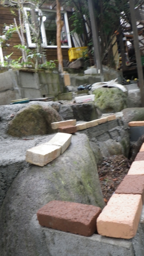 9/15:花壇上側のレンガ積み~階段の嵩上げ等