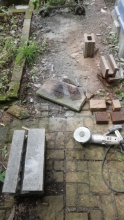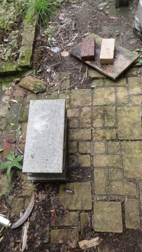 2025/9/15:最外縁部花壇の周りのレンガ積み~階段の嵩上げ等