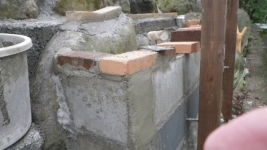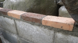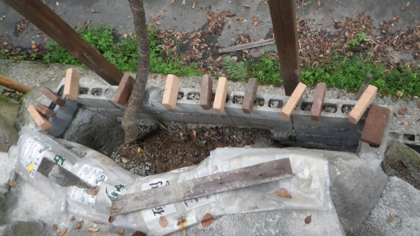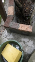 次は、花壇下側のレンガ積み