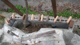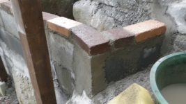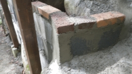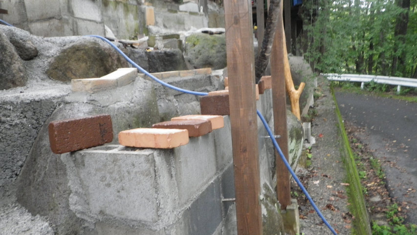 2025/9/19:最外縁部花壇の周りのレンガ積み~階段のコンクリ埋め等