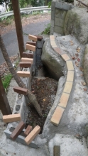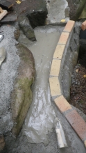まず花壇上側のレンガ水路の仕上げから