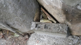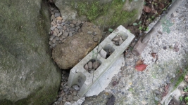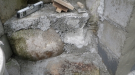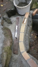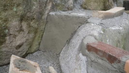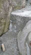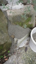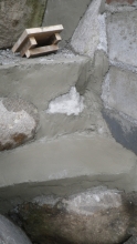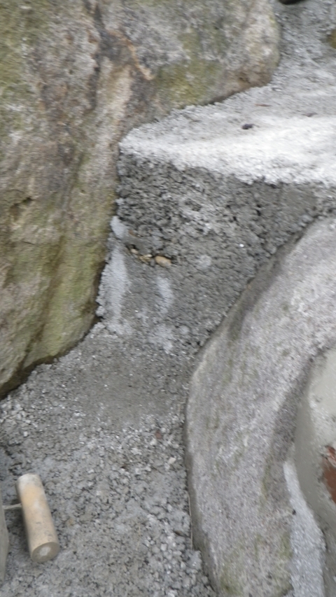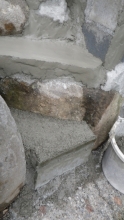 モルタルで階段の壁面の荒れてるところを少し整える