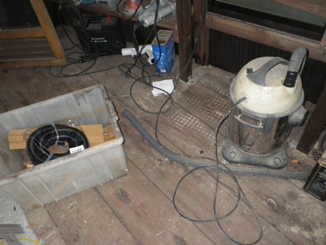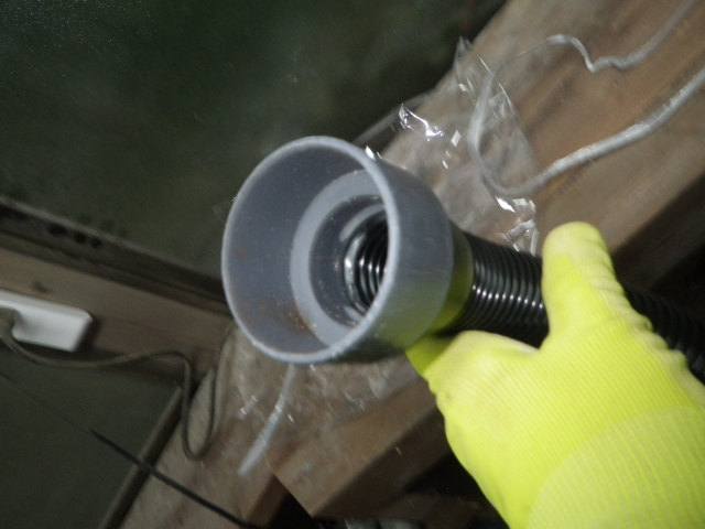 まずは、ここに持ってきた古い集塵機のホースが経年劣化で切れてしまったので、交換