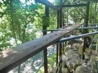 | 桁[9]への垂木受けの加工の後、桁[4]側の垂木受けの作業のため足場の位置を変更 |