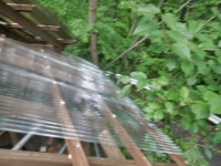 8/13:1.パーゴラの東側の東端からポリカ波板を張っていく
