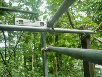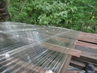【9:51】パーゴラの東側の東端からポリカ波板を張っていく |