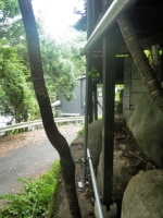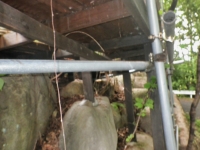 朽ちてる柱J(まだなんとか自立してる)を交換する前に、旧X区のデッキが崩落しないように支えの足場を立てる