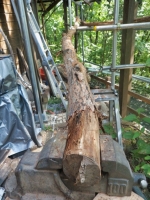 9/14:天然木の[柱J]予定のコナラ皮剥き~研磨~防腐防虫剤塗布