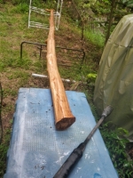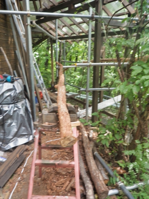 2本一緒に防腐防虫塗装する予定なので、終わったコナラは待機 |