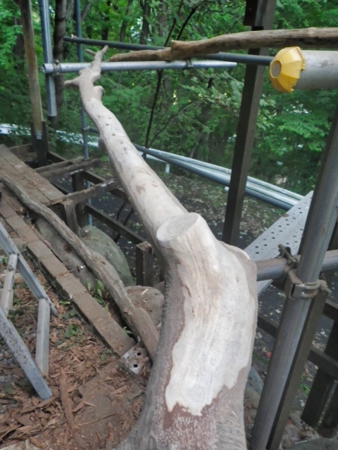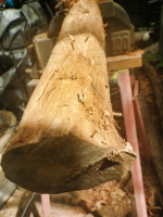 もう一本の桁11予定のエゴノキの外皮は、薄くて、そこそこ密着してるので、ノミでは上手くいかなくて