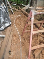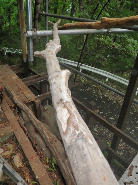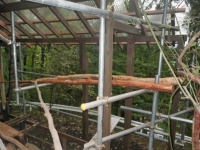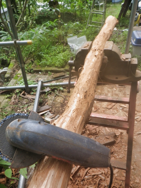 9/15:天然木の桁10の残りの外皮を剥いて研磨して防腐防虫塗装