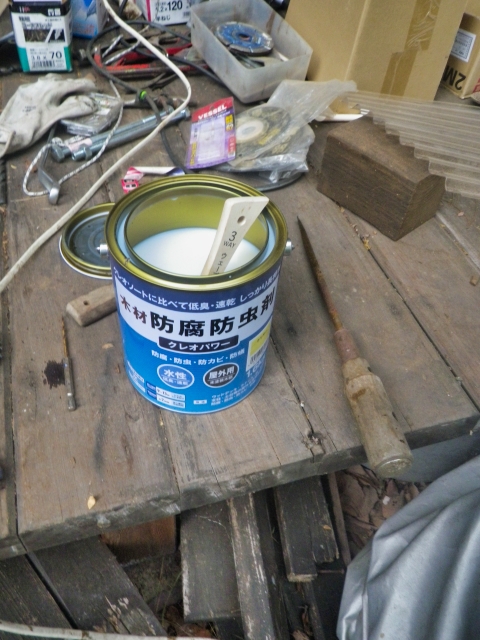 って事で、今日は2本塗るのはあきらめて、研磨終わってるコナラだけ洗浄して防腐防虫塗装する |