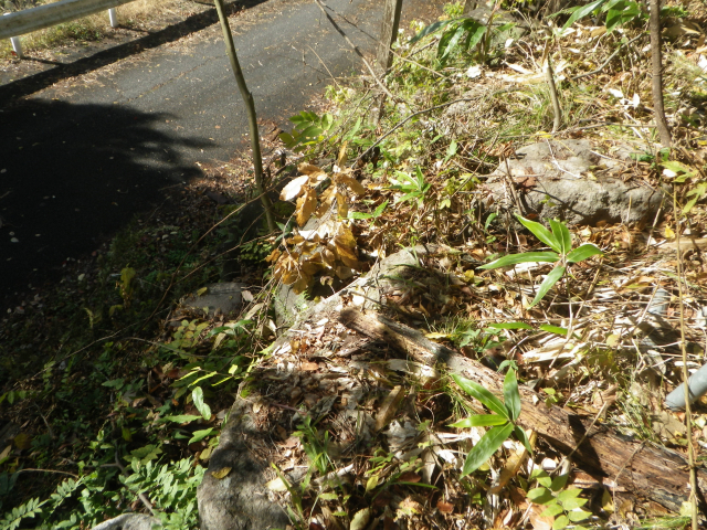 そのサンショウも寿命で?枯れてるし、工事の邪魔になるので、擁壁上に生えてる樹木は全部伐採する。