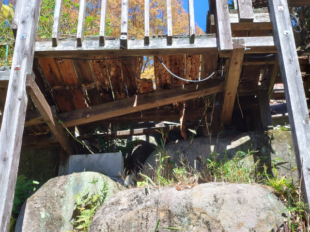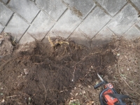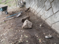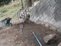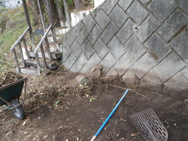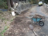 現場の下から足場を立てるため、堆積してる土砂の撤去。