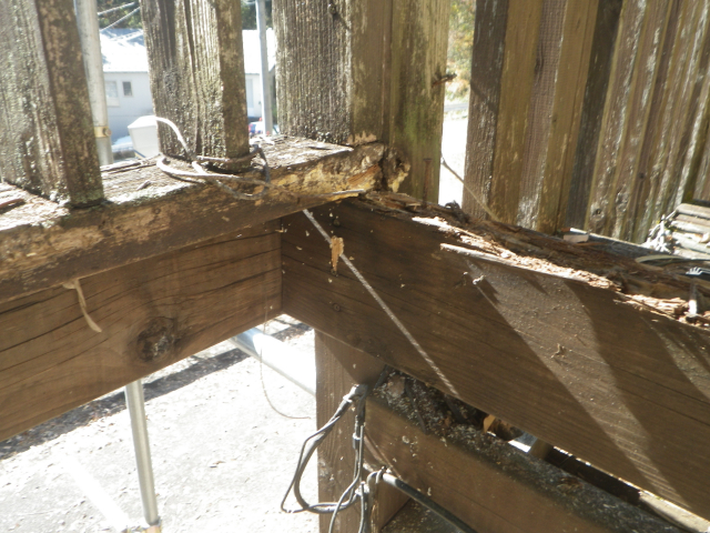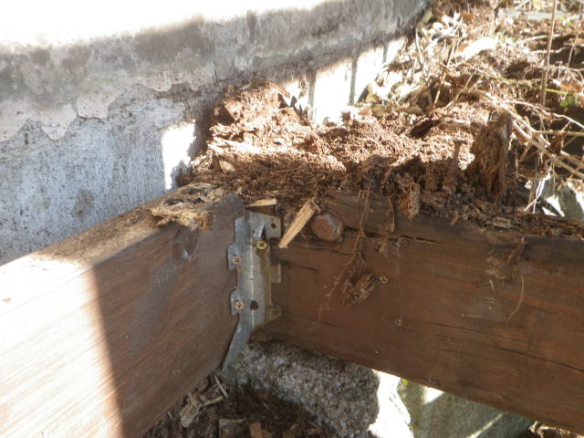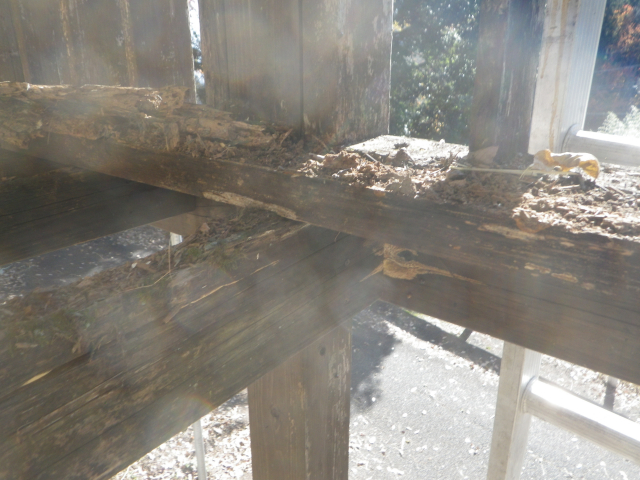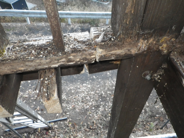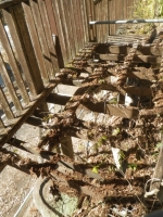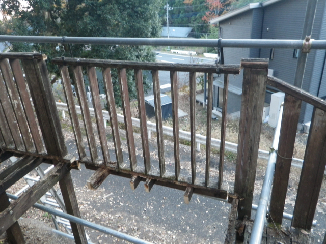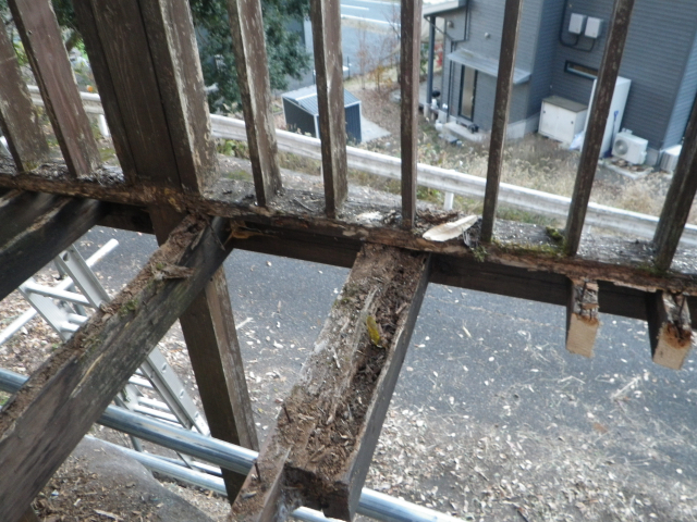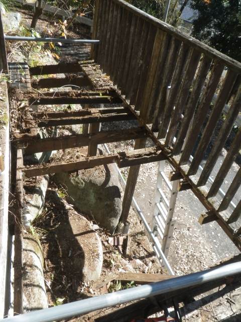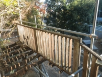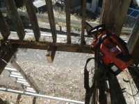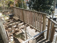 手摺の桟部分の1x4材はそこそこ生きてるので、丸ごと外す。他は、ほぼ全交換。