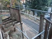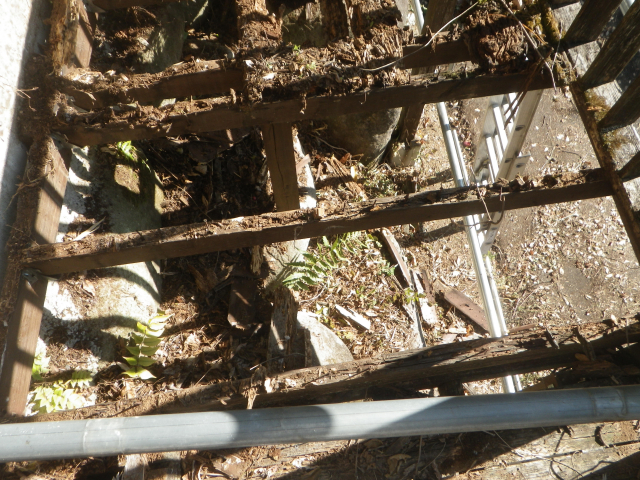 南面デッキの改修は、桃パーゴラ下の東端の段から。