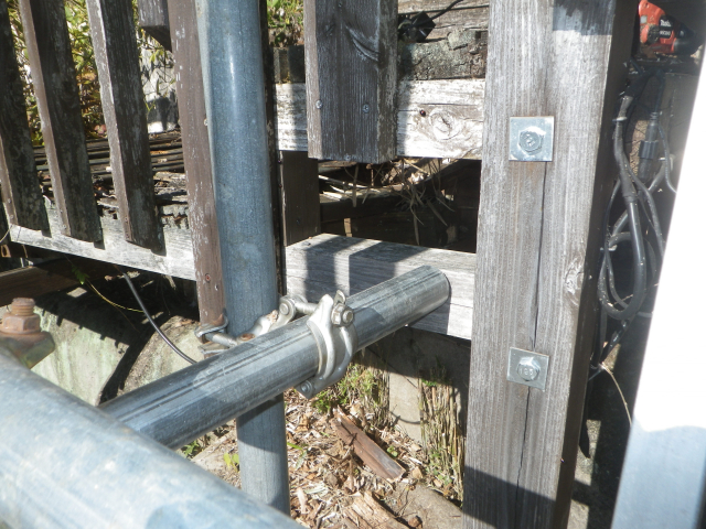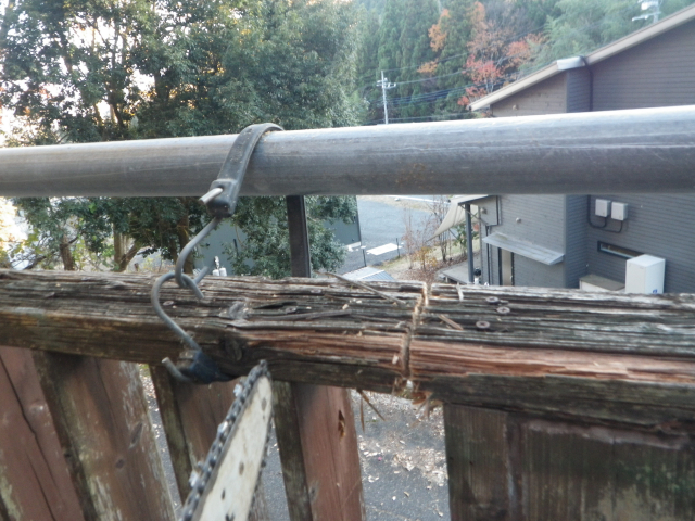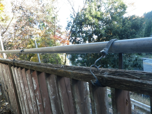 【15:01】西側の柵を落ちないようにゴムで吊る |