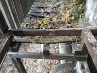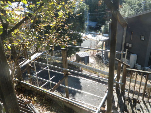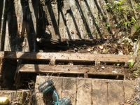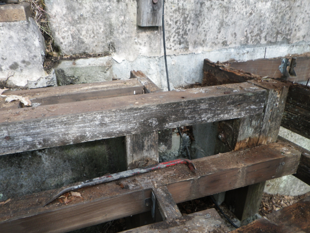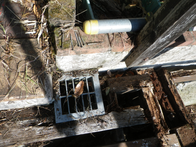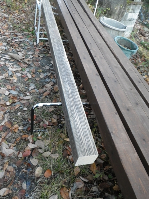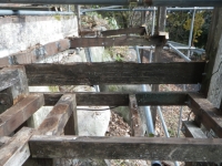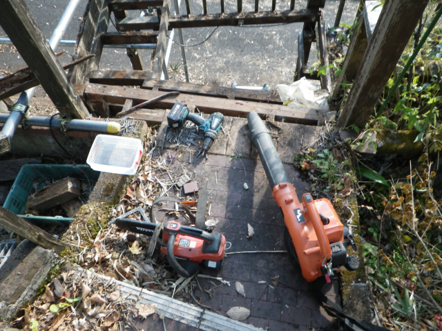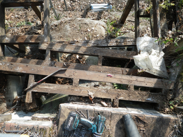 桃パーゴラ前の南面の旧デッキの床と桁の解体は完了。