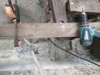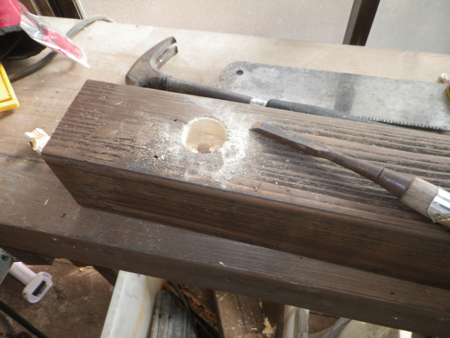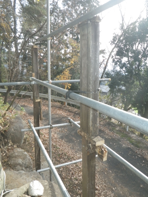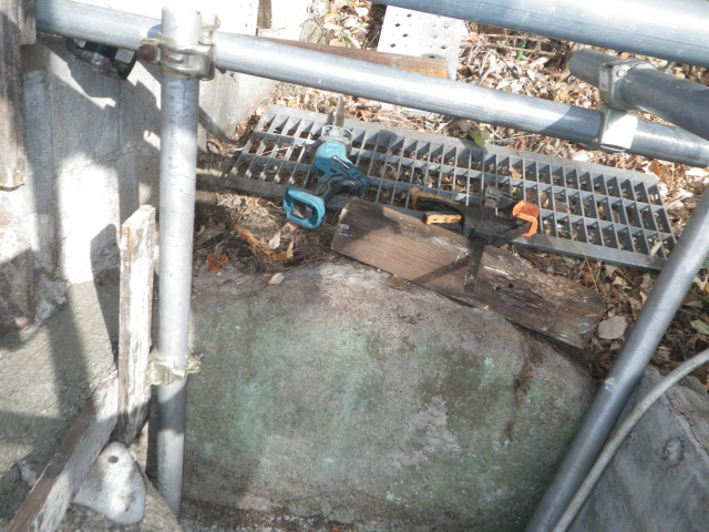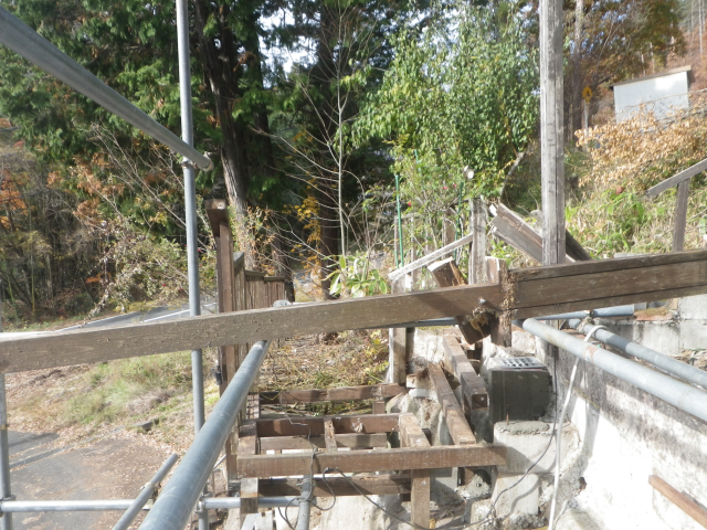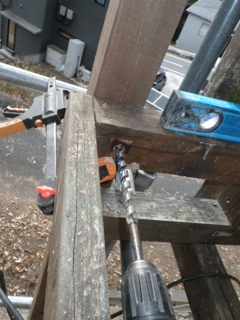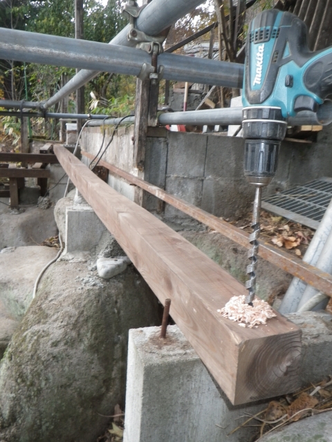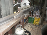 【16:13】撤去した旧支柱から生きてる部分を切り出す |