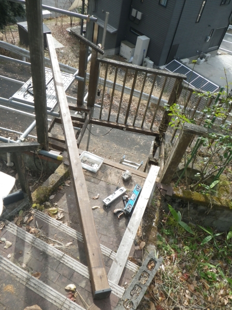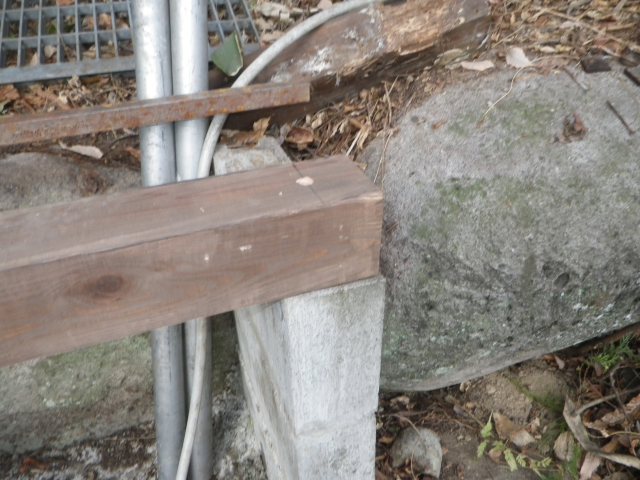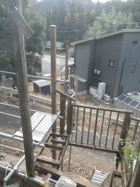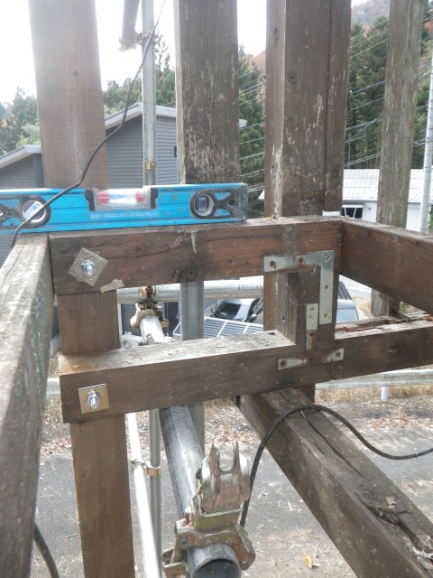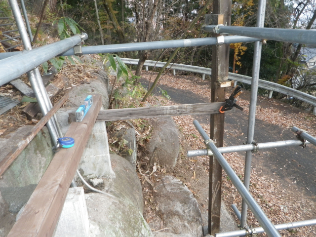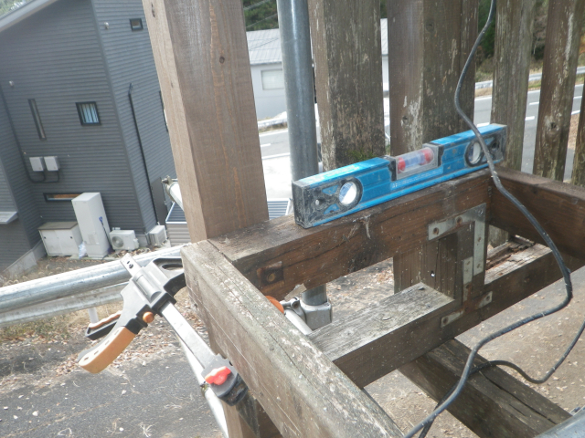 | 中央の柵とか桁も後日交換だが、とりあえず新支柱と仮にボルト止め |