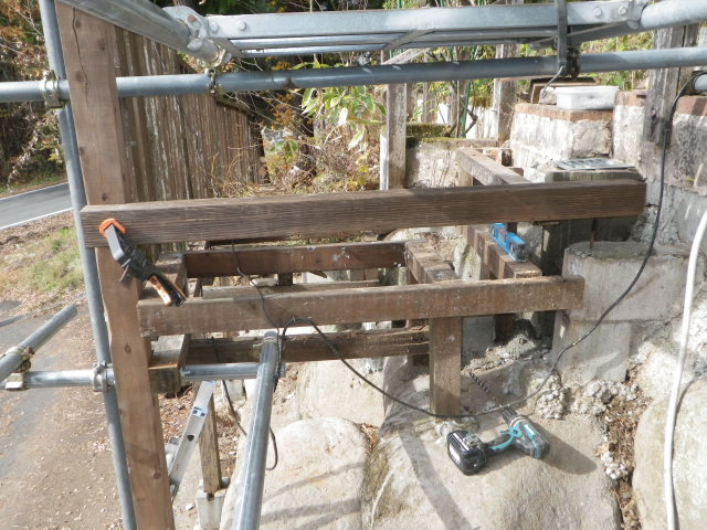 次は、新支柱と旧コンクリ基礎を繋ぐ梁。