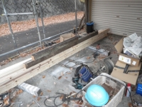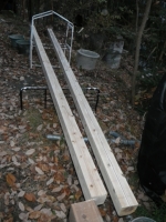 1本目の西側の支柱は、90mm角x4000mmをそのまま使ったが、