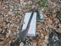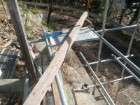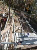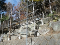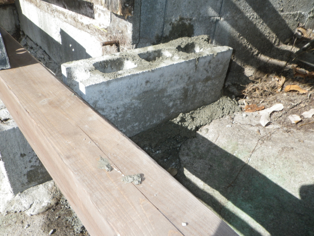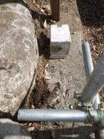 東側の支柱を沓石に挿そうとしたら、ここの沓石も雑草にやられて浮いていたことが発覚