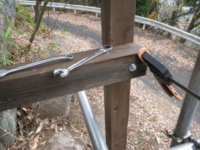【15:40】スペーサー挟んで中央支柱に桁固定