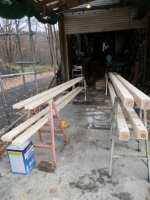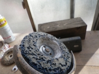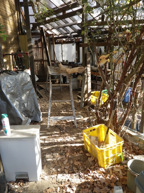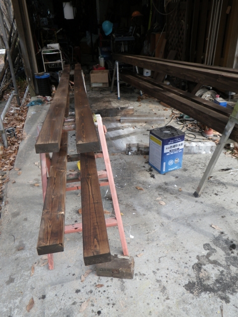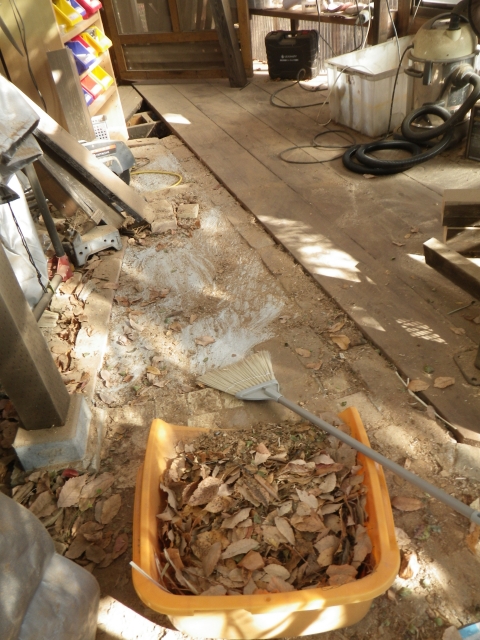 | 木工作業場の床も凄く汚れたのでお掃除。その後エゴノキ塗装。 |
