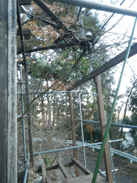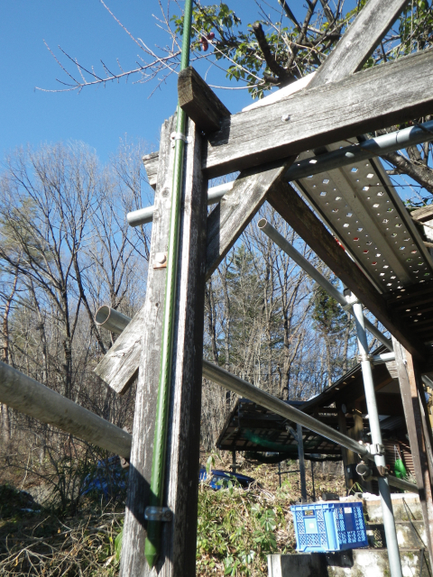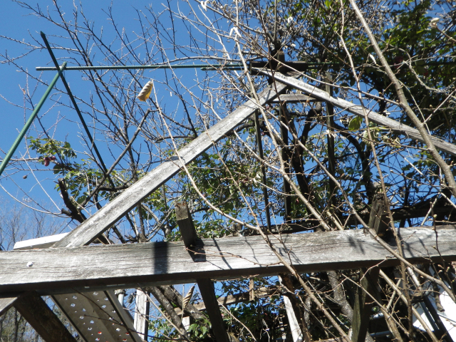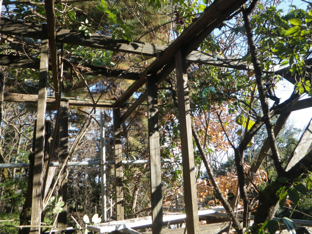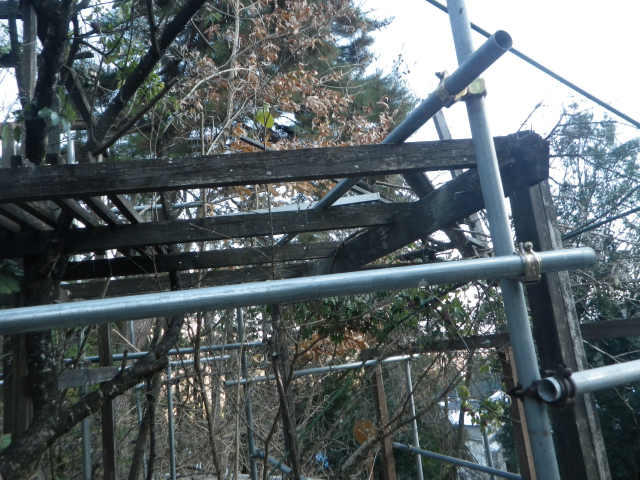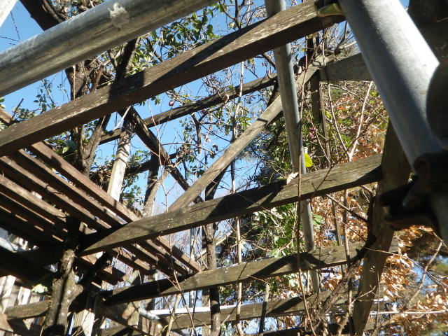 | 下半分は、パーゴラの横桁が邪魔になるので、全解体後だな |